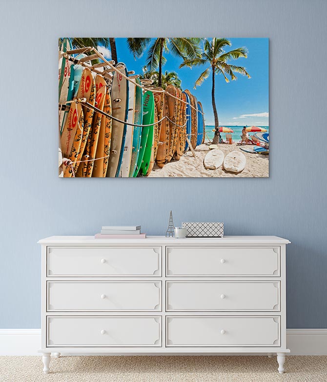 We use special UV-resistant inks and coat each canvas with a protective layer that prevents against fading and dust damage, so your print will need very little additional care.